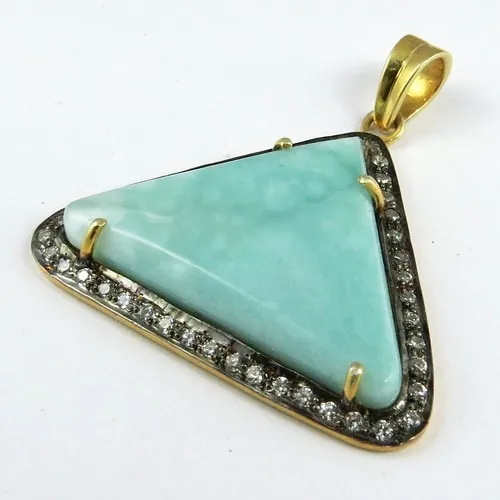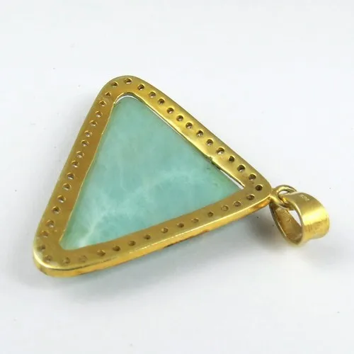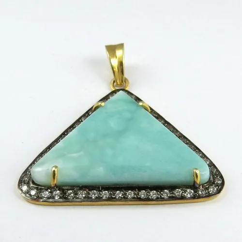 | Light Green Jewel !! Larimar & CZ 925 Sterling Silver Pendant | |